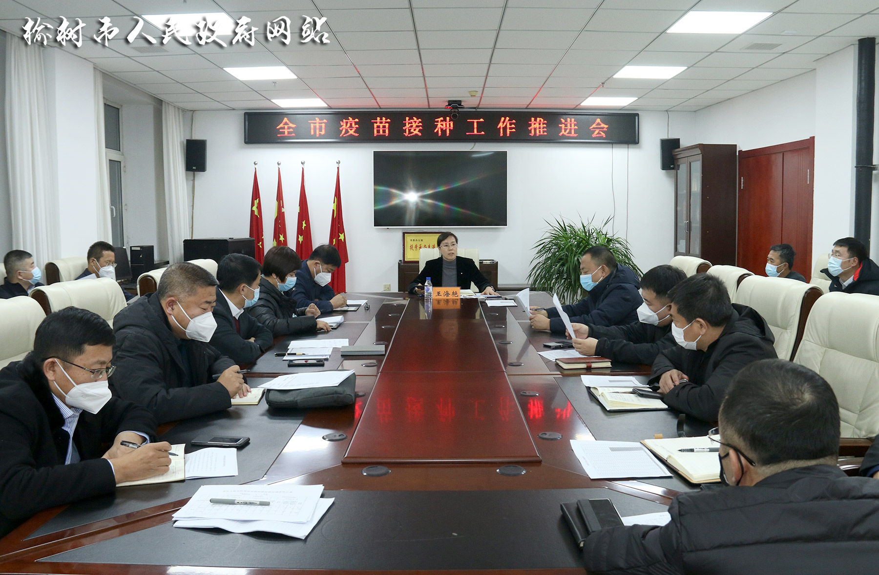 12月7日,副市长王海艳在市行政中心小会议室主持召开全市疫苗接种工作推进会。